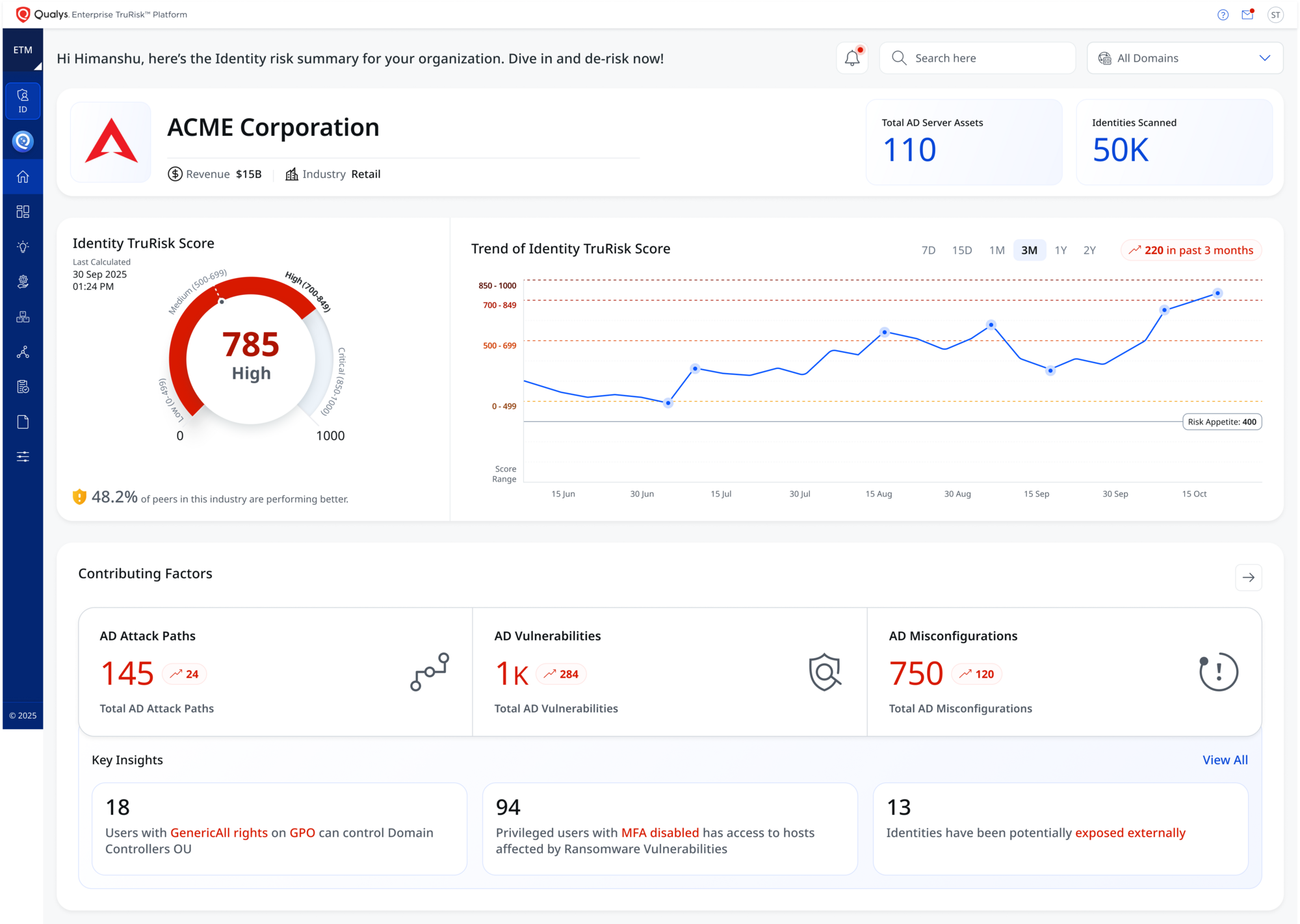 The adoption of AI has increased the volume and complexity of attacks, while fueling a surge in non-human and autonomous identities that security teams must manage. As a result, many security teams are stretched thin, struggling to prioritize and respond effectively. Organizations need a proactive, intelligence-driven approach to breach prevention, tailored to their unique risk profile. Qualys ETM delivers this by aligning Identity Risk Posture Management, contextual threat intelligence for prioritization, and exposure exploitability validation with a unified Risk Operation Center (ROC) framework, enabling provable risk reduction at enterprise scale.